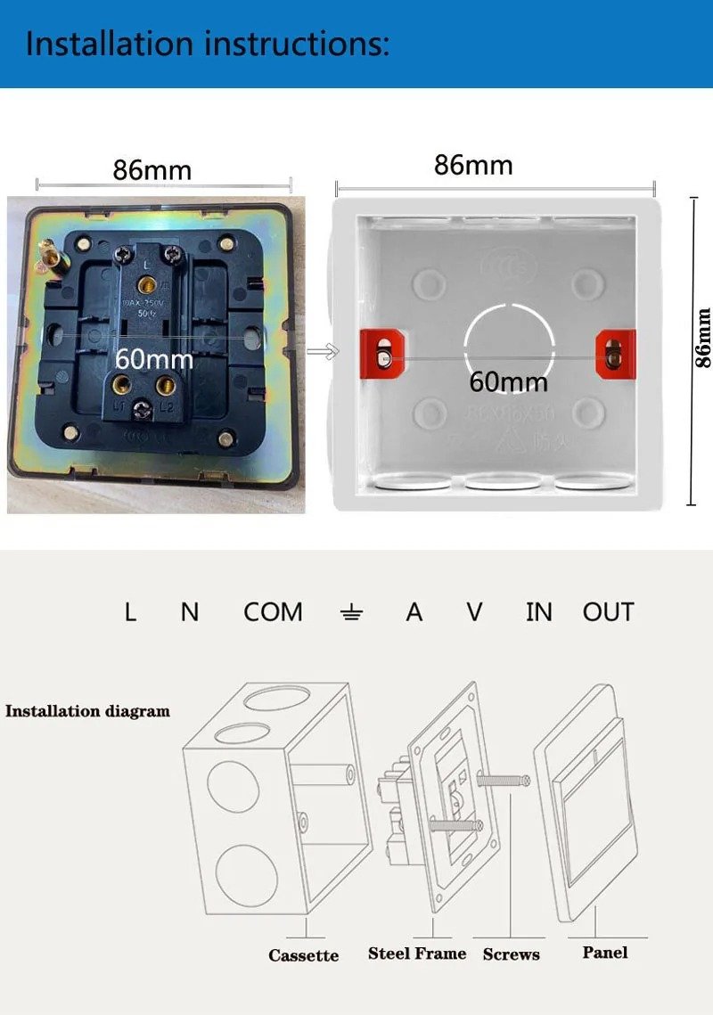 Made from high-quality fire-resistant materials, this back box helps prevent overheating and electrical hazards. Its robust construction ensures secure housing for electrical wiring, reducing the risk of short circuits and damage. The standard 86*86mm size makes it a perfect match for 3*3 switch and socket configurations, providing seamless compatibility with various electrical setups.