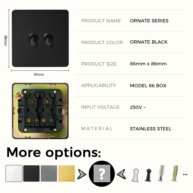 Our Black Light Switch is the perfect combination of modern design, durability, and advanced functionality, making it a premium choice for contemporary interiors. Made from high-quality stainless steel, its elegant black finish adds a sleek, bold touch to any space while offering superior resistance to fingerprints, wear, and tarnishing. The ultra-thin panel design ensures a seamless, flush look that complements both minimalist and industrial-style settings.