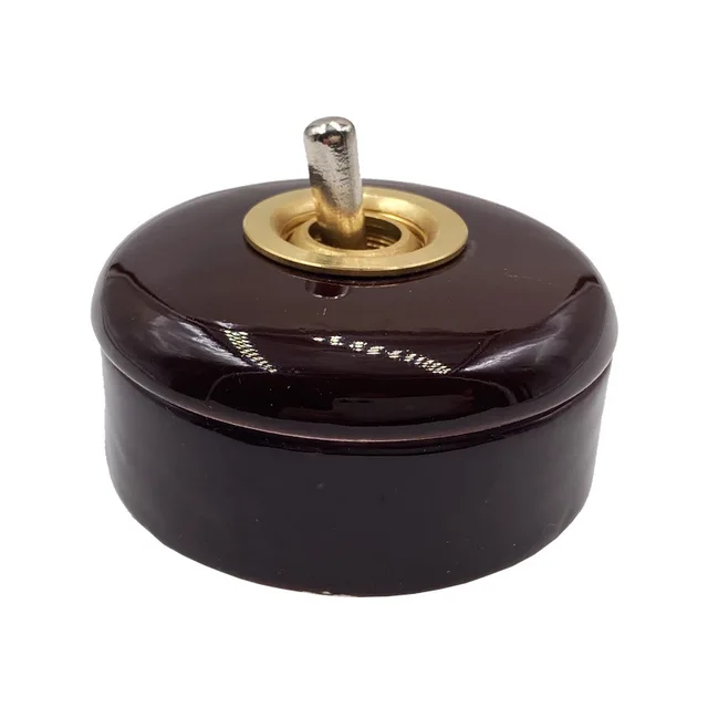 Retro Ceramic Toggle Light Switch with Brass Lever