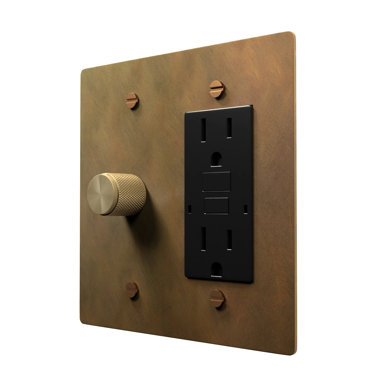 Aged Brass Rotary Dimmer and GFI Decora Outlet Combo