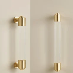 Elevate your space with this luxury cabinet pull. Featuring a transparent acrylic handle paired with elegant gold accents, it’s the perfect addition to modern wardrobes, cabinets, or drawers. Add a touch of sophistication to any furniture with this premium pull.