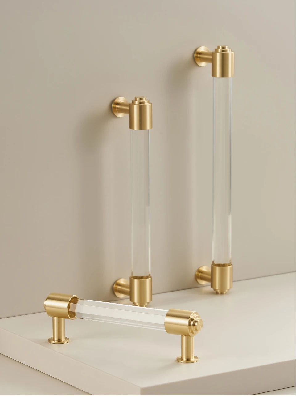Transparent Acrylic Cabinet Pull with Gold Accents