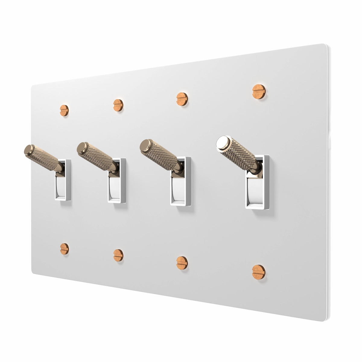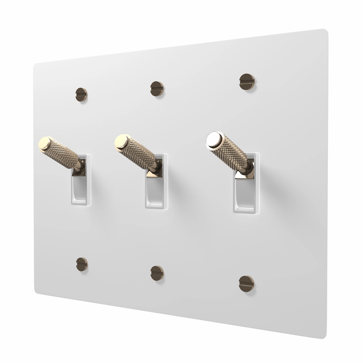 The White Brass Toggle Switch combines classic design with modern durability, making it a refined choice for any interior. Crafted from high-quality solid brass, it features a sleek white brass finish, offering a touch of elegance and timeless appeal. Its sturdy construction ensures long-lasting performance, while its smooth toggle action provides effortless operation.